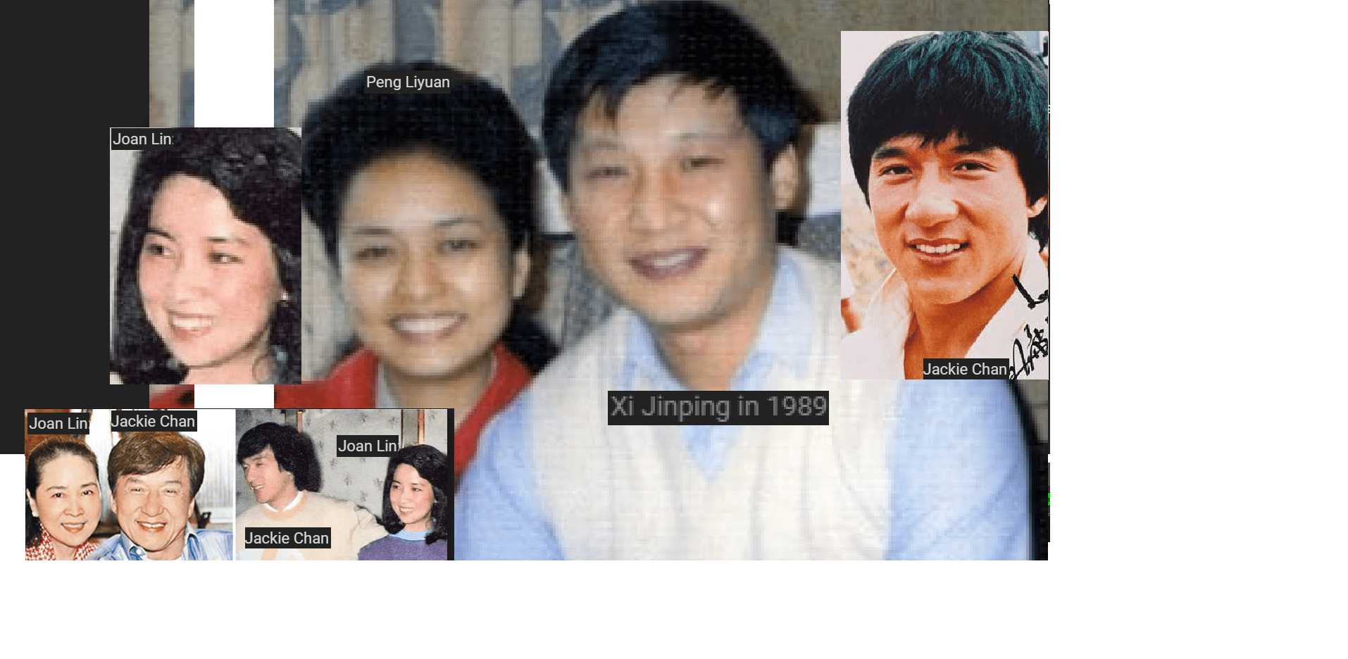 March 23, 2017 JACKIE CHAN = President XI JINPING of China. Jackie’s wife = Xi Jinping’s wife ……….JOAN LIN = PENG LIYUAN ………..WORLD EXCLUSIVES! Share this: Share on X (Opens in new window) X Share on Facebook (Opens in new window) Facebook Like Loading... Related