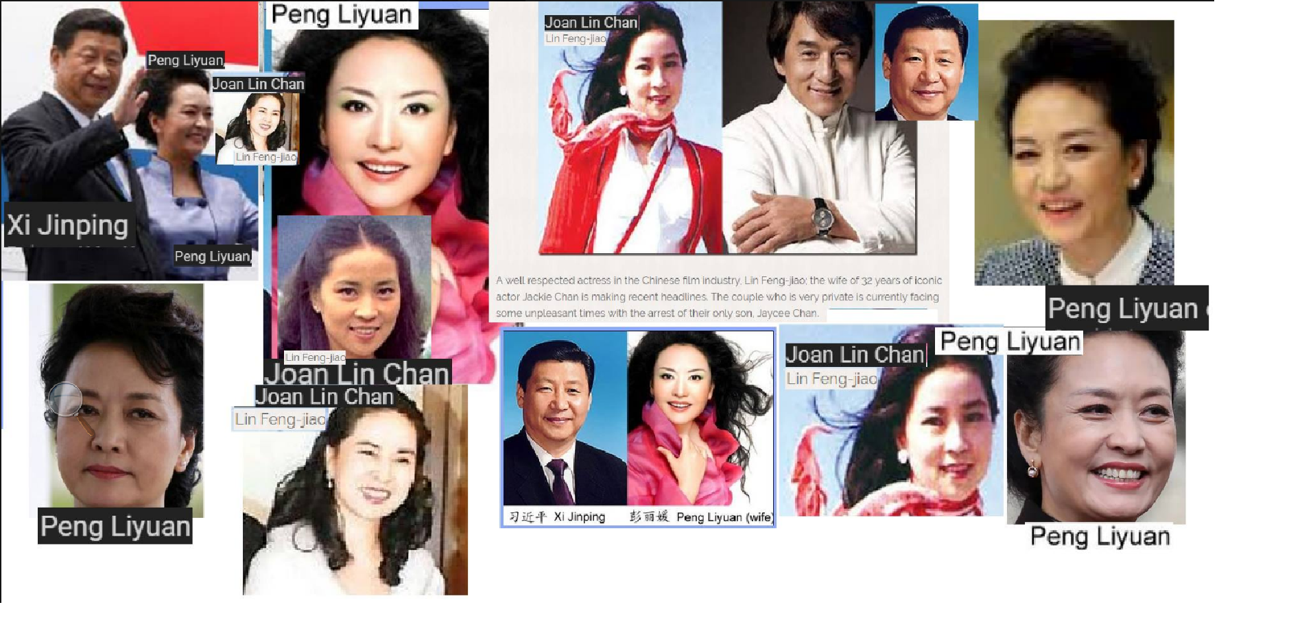March 27, 2017 Jackie Chan’s wife = Xi Jinping’s wife JOAN LIN CHAN=PENG LIYUAN China’s 1st LadyWORLD EXCLUSIVES! Share this: Share on X (Opens in new window) X Share on Facebook (Opens in new window) Facebook Like Loading... Related