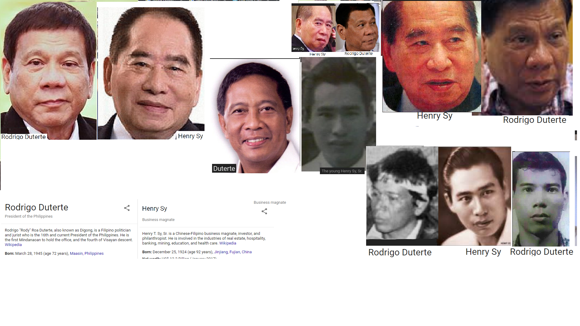April 19, 2017 Philippines Pres. RODRIGO DUTERTE = HENRY SY, Richest Filipino, born in China, WORLD EXCLUSIVE! Share this: Share on X (Opens in new window) X Share on Facebook (Opens in new window) Facebook Like Loading... Related