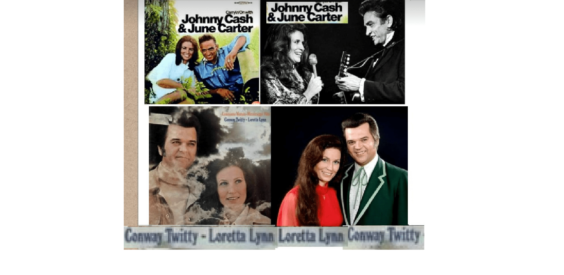April 29, 2017 Johnny Cash = Conway Twitty ………………….June Carter = Loretta Lynn ….WORLD EXCLUSIVES! Share this: Share on X (Opens in new window) X Share on Facebook (Opens in new window) Facebook Like Loading... Related