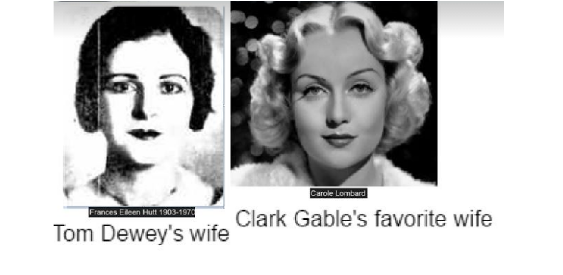 May 2, 2017 Tom Dewey’s wife = Clark Gable’s wife, Carole Lombard …WORLD EXCLUSIVE! Share this: Share on X (Opens in new window) X Share on Facebook (Opens in new window) Facebook Like Loading... Related