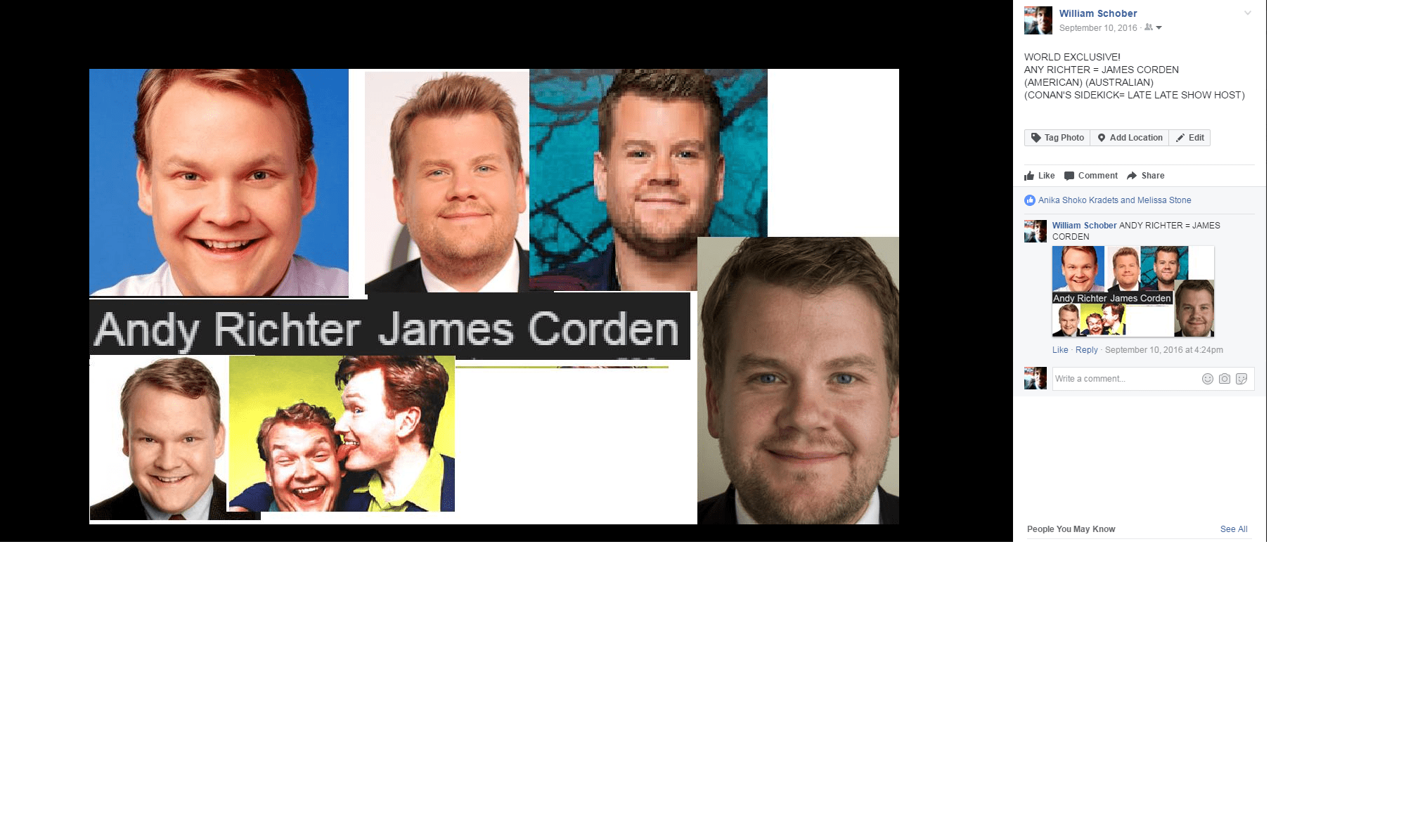 May 6, 2017 James Corden = Andy Ridhter … WORLD EXCLUSIVE! Share this: Share on X (Opens in new window) X Share on Facebook (Opens in new window) Facebook Like Loading... Related