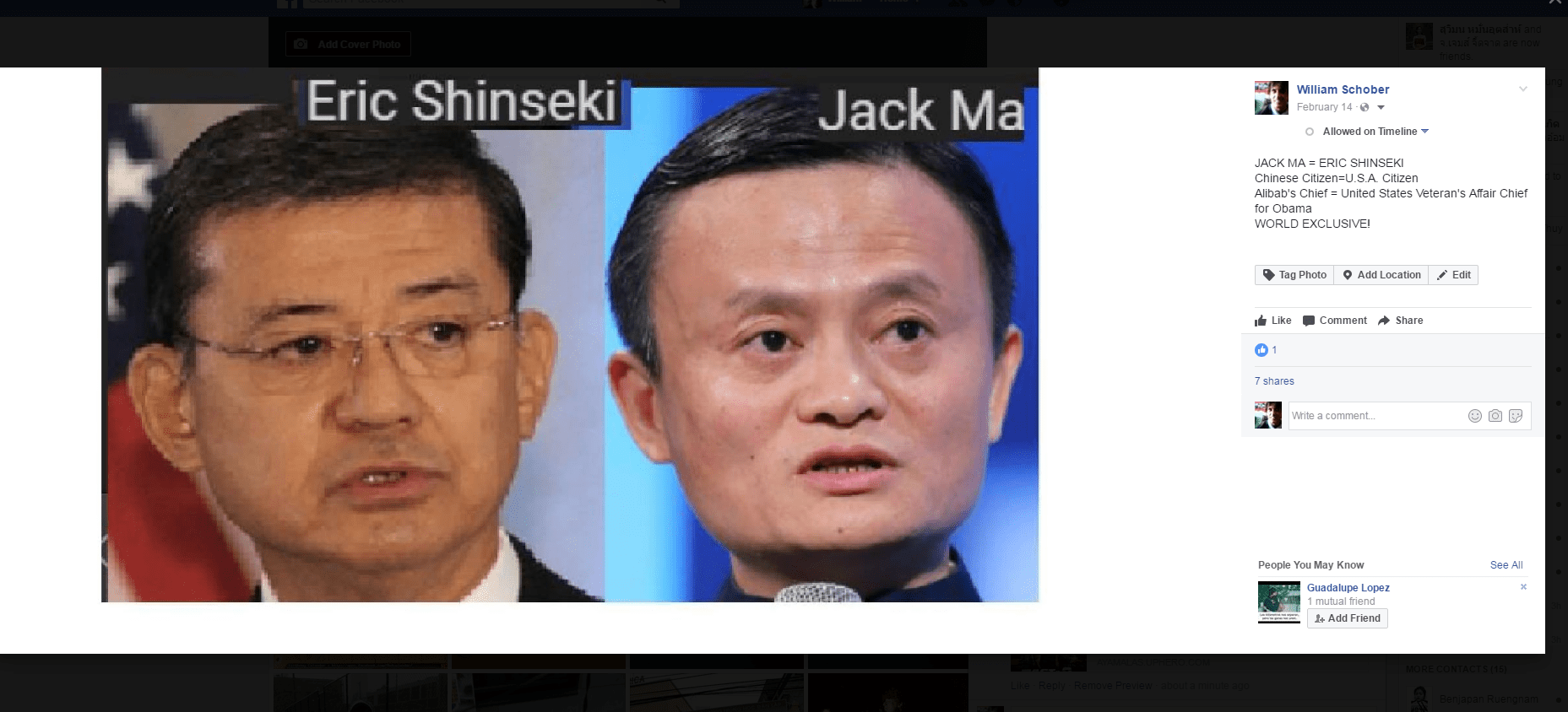 May 13, 2017 JACK MA = ERIC SHINSEKI …………. Chinese Citizen=U.S.A. Citizen ……Alibab’s Chief = United States Veteran’s Affair Chief for Obama … WORLD EXCLUSIVE! Share this: Share on X (Opens in new window) X Share on Facebook (Opens in new window) Facebook Like Loading... Related