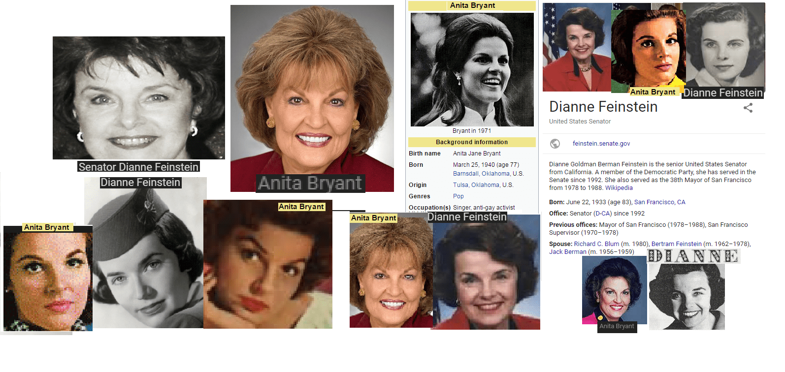 June 16, 2017 Senator Dianne Feinstein = Anita Bryant, singer/model … WORLD EXCLUSIVE! Share this: Share on X (Opens in new window) X Share on Facebook (Opens in new window) Facebook Like Loading... Related