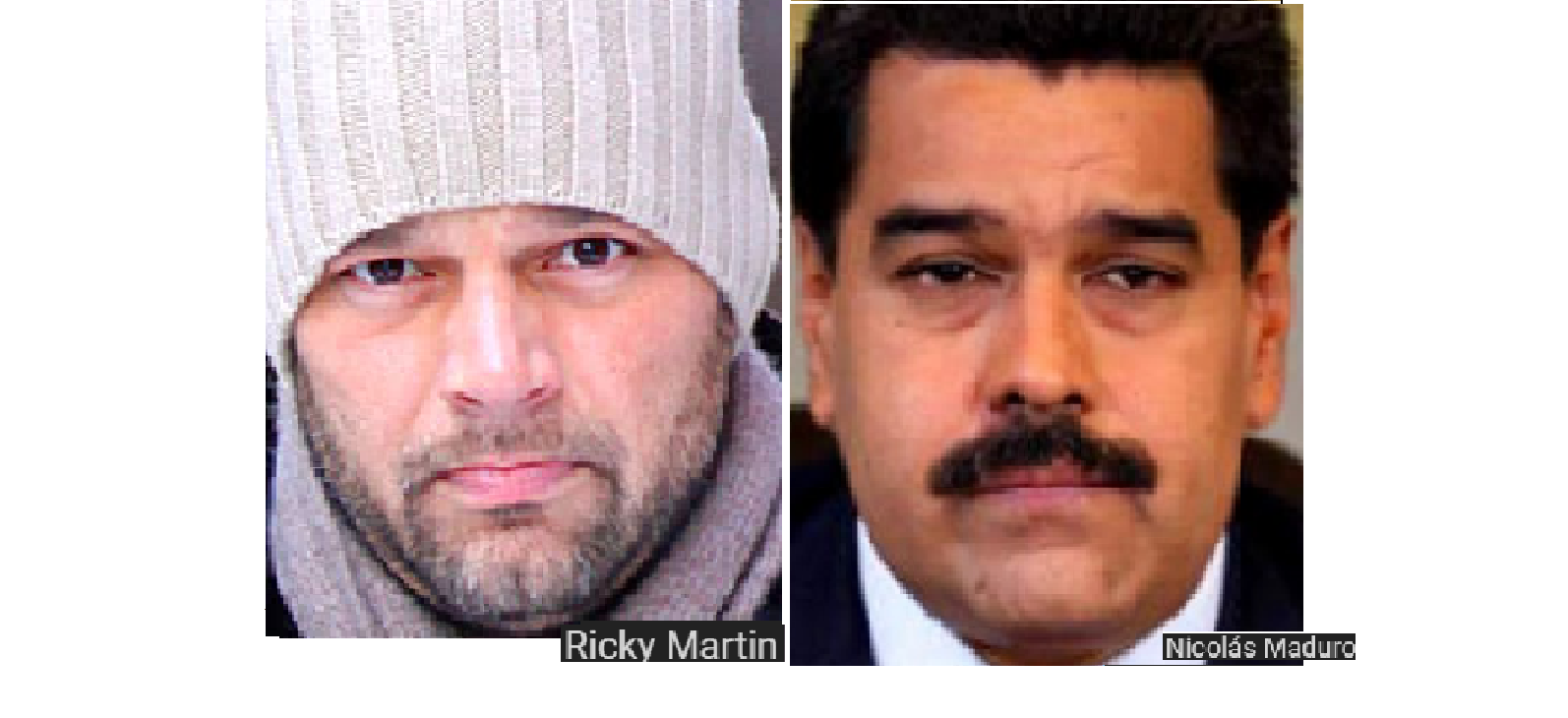 July 5, 2017 Pres. NICOLAS MADURO = RICKY MARTIN Share this: Click to share on X (Opens in new window) X Click to share on Facebook (Opens in new window) Facebook Like Loading... Related