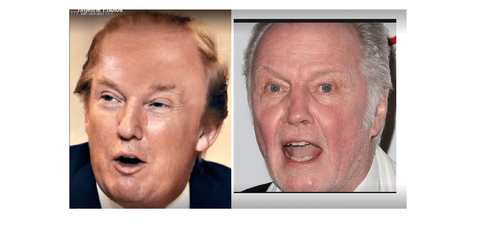 August 19, 2017 Donald Trump = actor Jon Voight Share this: Share on X (Opens in new window) X Share on Facebook (Opens in new window) Facebook Like Loading... Related