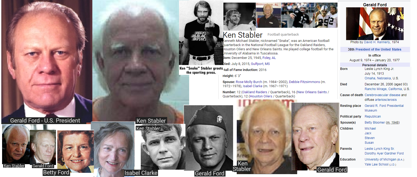 February 4, 2018 Pres. Gerald Ford = Ken Stabler … EXPOSED HERE 1ST! Share this: Share on X (Opens in new window) X Share on Facebook (Opens in new window) Facebook Like Loading... Related