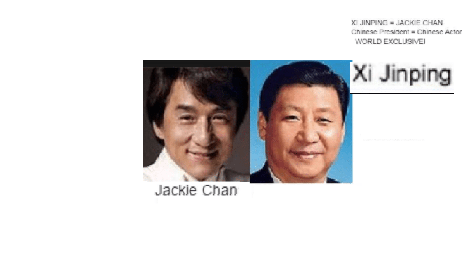 March 4, 2018 China Pres. Xi Jinping = Jackie Chan … EXPOSED HERE 1ST Share this: Share on X (Opens in new window) X Share on Facebook (Opens in new window) Facebook Like Loading... Related