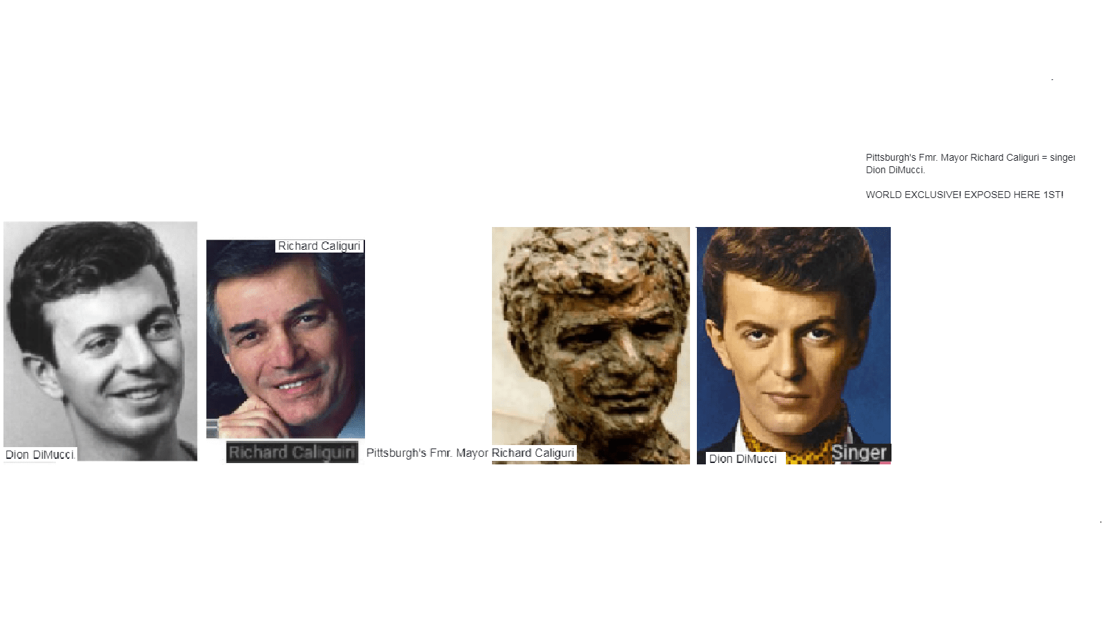 March 18, 2018 PITTSBURGH’S FMR. MAYOR, RICHARD CALIGURI = DION DIMUCCI, SINGER … EXPOSED HERE 1ST! Share this: Share on X (Opens in new window) X Share on Facebook (Opens in new window) Facebook Like Loading... Related