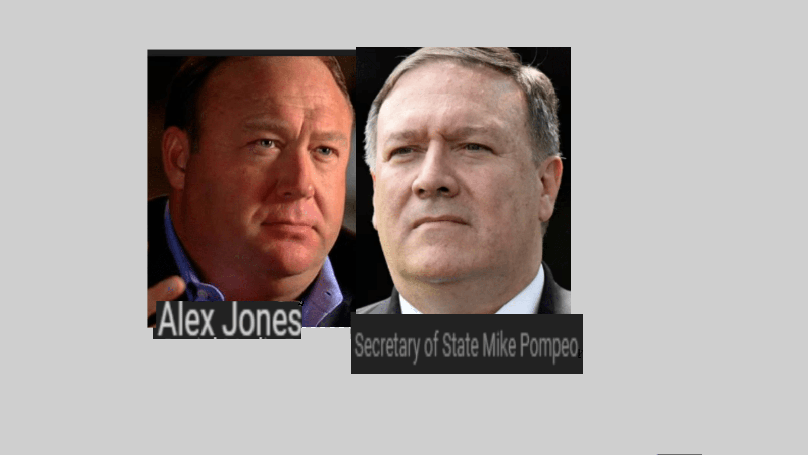 August 15, 2018 Alex Jones = Mike Pompeo, Trump’s U.S. Secretary of State … EXPOSED HERE 1ST! Share this: Share on X (Opens in new window) X Share on Facebook (Opens in new window) Facebook Like Loading... Related