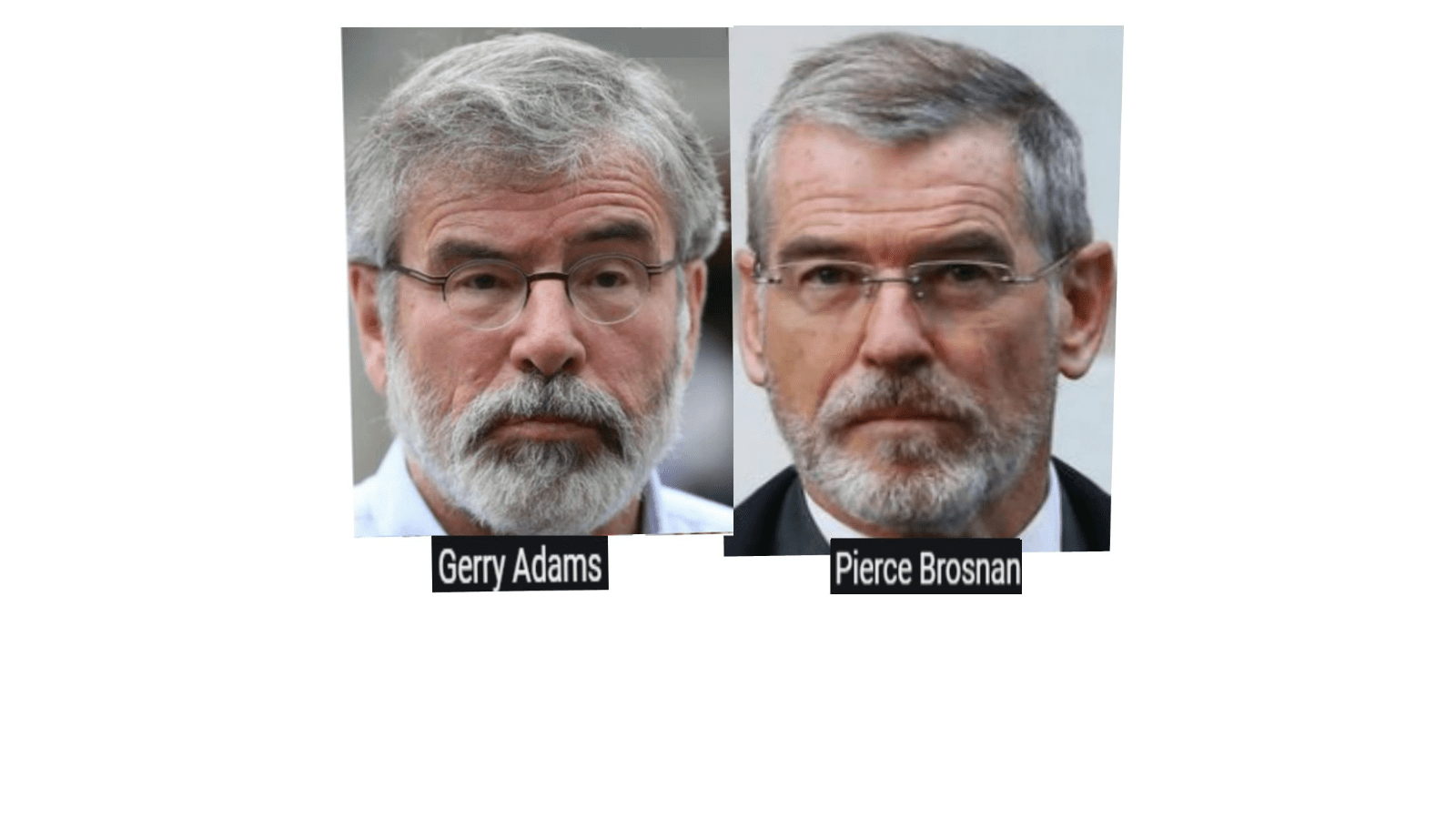 September 17, 2018February 10, 2020 Sinn Fein’s Gerry Adam = Pierce Brosnan, British actor. Share this: Share on X (Opens in new window) X Share on Facebook (Opens in new window) Facebook Like Loading... Related
