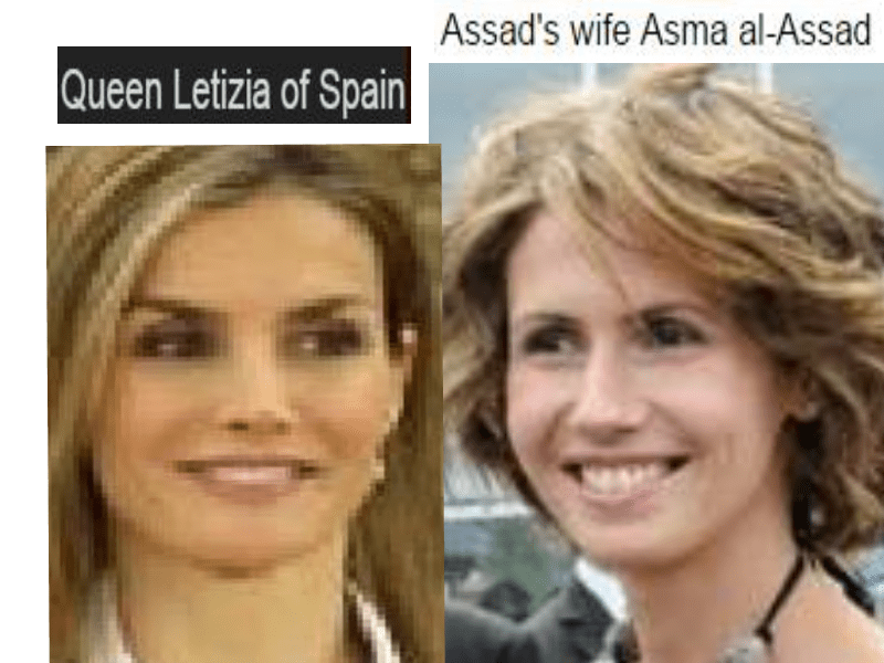 September 20, 2018 QUEEN LETIZIA OF SPAIN = ASMA AL-ASSAD OF SYRIA (Assad’s wife) … Exposed here 1st! Share this: Share on X (Opens in new window) X Share on Facebook (Opens in new window) Facebook Like Loading... Related