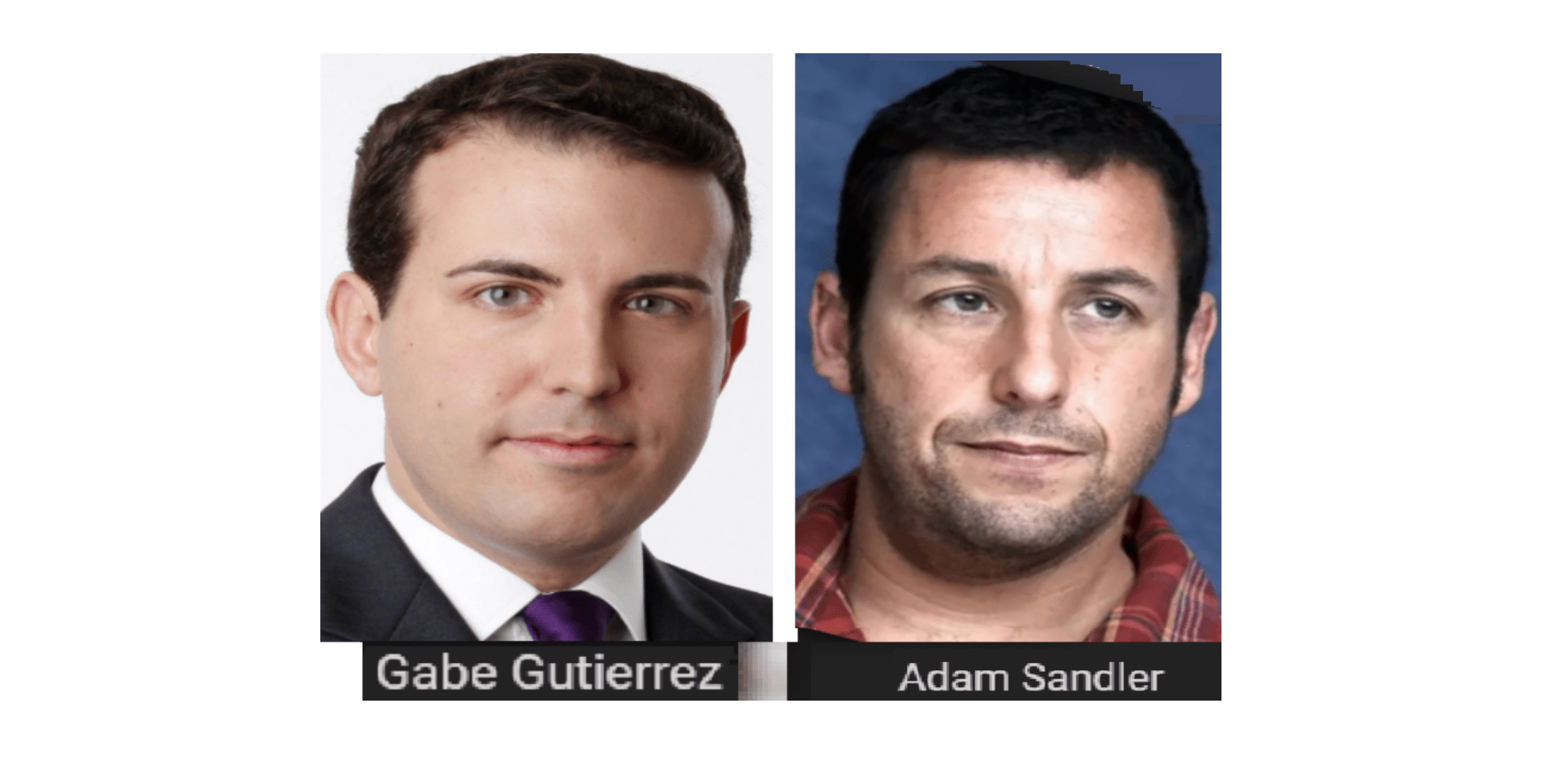 October 19, 2018October 19, 2018 NBC TV reporter, Gabe Gutierrez = Adam Sandler, comedian … EXPOSED HERE 1ST! Share this: Share on X (Opens in new window) X Share on Facebook (Opens in new window) Facebook Like Loading... Related
