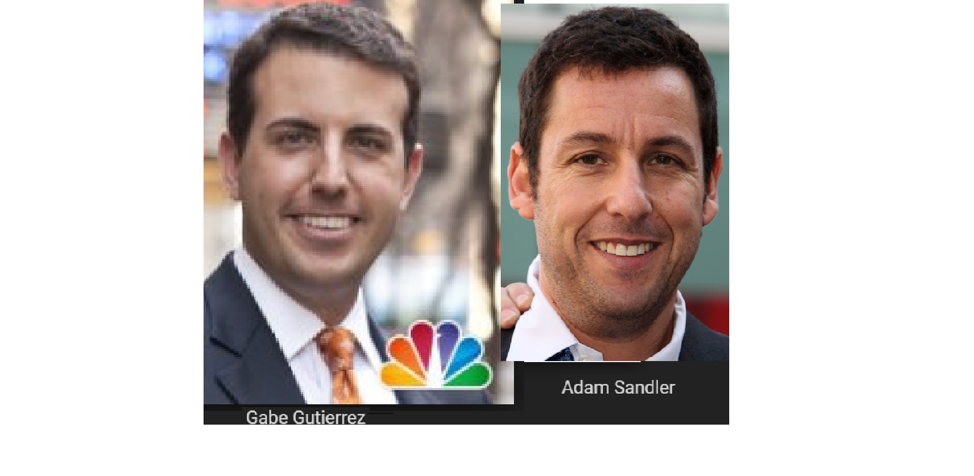 October 19, 2018October 19, 2018 NBC TV reporter Gabe Gutierrez = Adam Sandler, comedian. WORLD EXCLUSIVE! EXPOSED HERE 1ST! Share this: Share on X (Opens in new window) X Share on Facebook (Opens in new window) Facebook Like Loading... Related