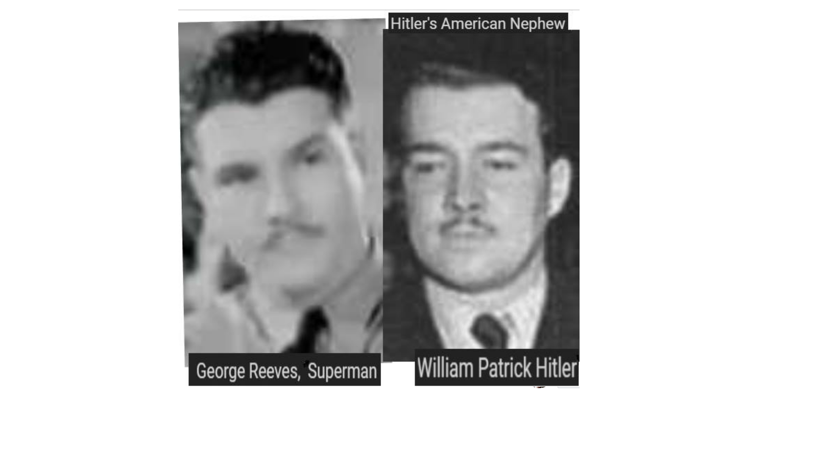 December 12, 2018 American U.S. Navy sailor, William Patrick Hitler = George Reeves, TV Superman … EXPOSED HERE 1ST! Share this: Share on X (Opens in new window) X Share on Facebook (Opens in new window) Facebook Like Loading... Related