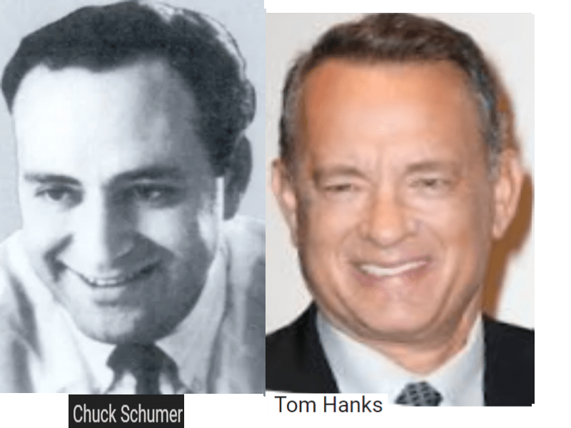 January 4, 2019 U.S. Sen. Chuck Schumer = Tom Hanks, actor … EXPOSED HERE 1ST! Share this: Share on X (Opens in new window) X Share on Facebook (Opens in new window) Facebook Like Loading... Related
