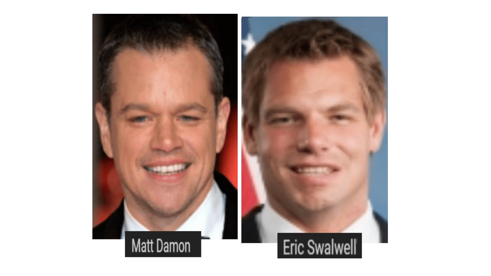 January 27, 2019January 30, 2019 U.S. Rep. Eric Swalwell = Matt Damon, actor … EXPOSED HERE 1ST! Share this: Share on X (Opens in new window) X Share on Facebook (Opens in new window) Facebook Like Loading... Related