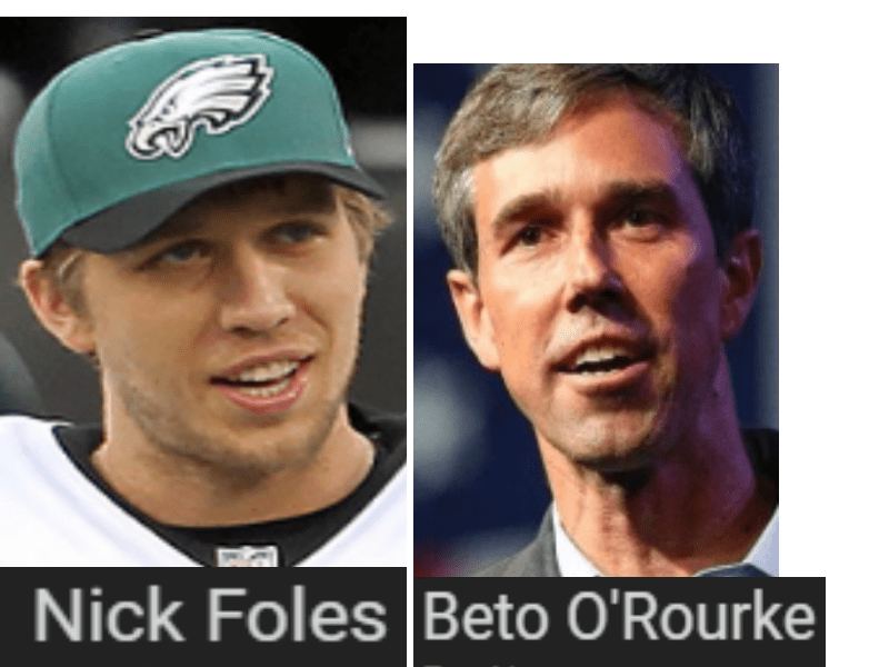 March 16, 2019 U.S. presidential candidate, BETO O’ROURKE = NICK FOLES, quarterback, NFL … Exposed here 1st! Share this: Share on X (Opens in new window) X Share on Facebook (Opens in new window) Facebook Like Loading... Related