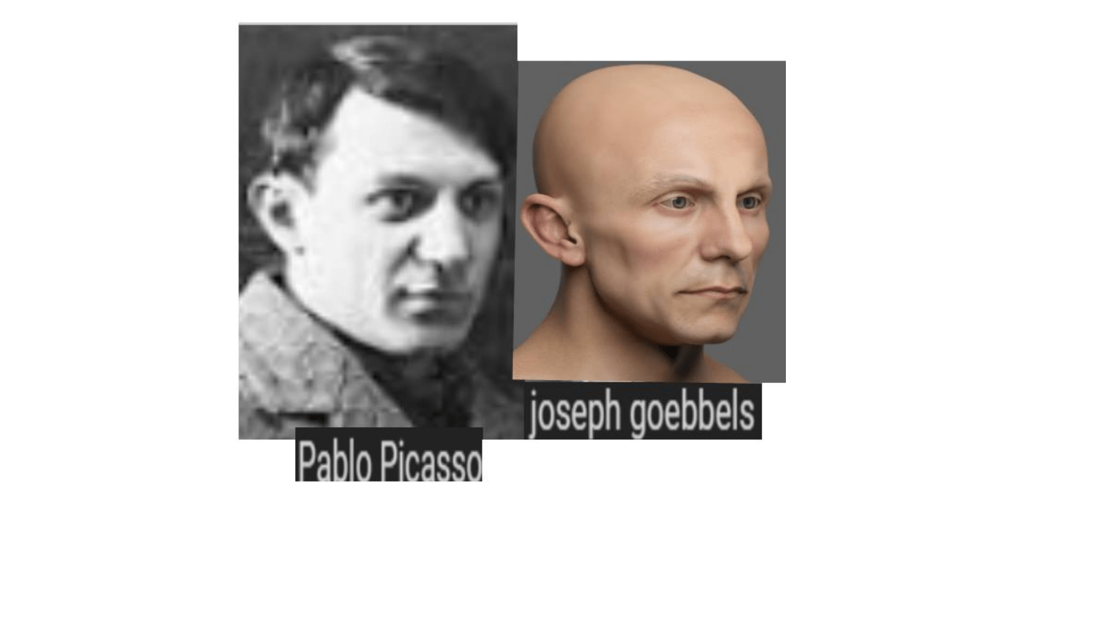 March 29, 2019March 30, 2019 NAZI PROPAGANDA MINISTER, JOSEPH GOEBBELS = PABLO PICASSO, FAMOUS SPANISH ARTIST … EXPOSED HERE 1ST! Share this: Share on X (Opens in new window) X Share on Facebook (Opens in new window) Facebook Like Loading... Related