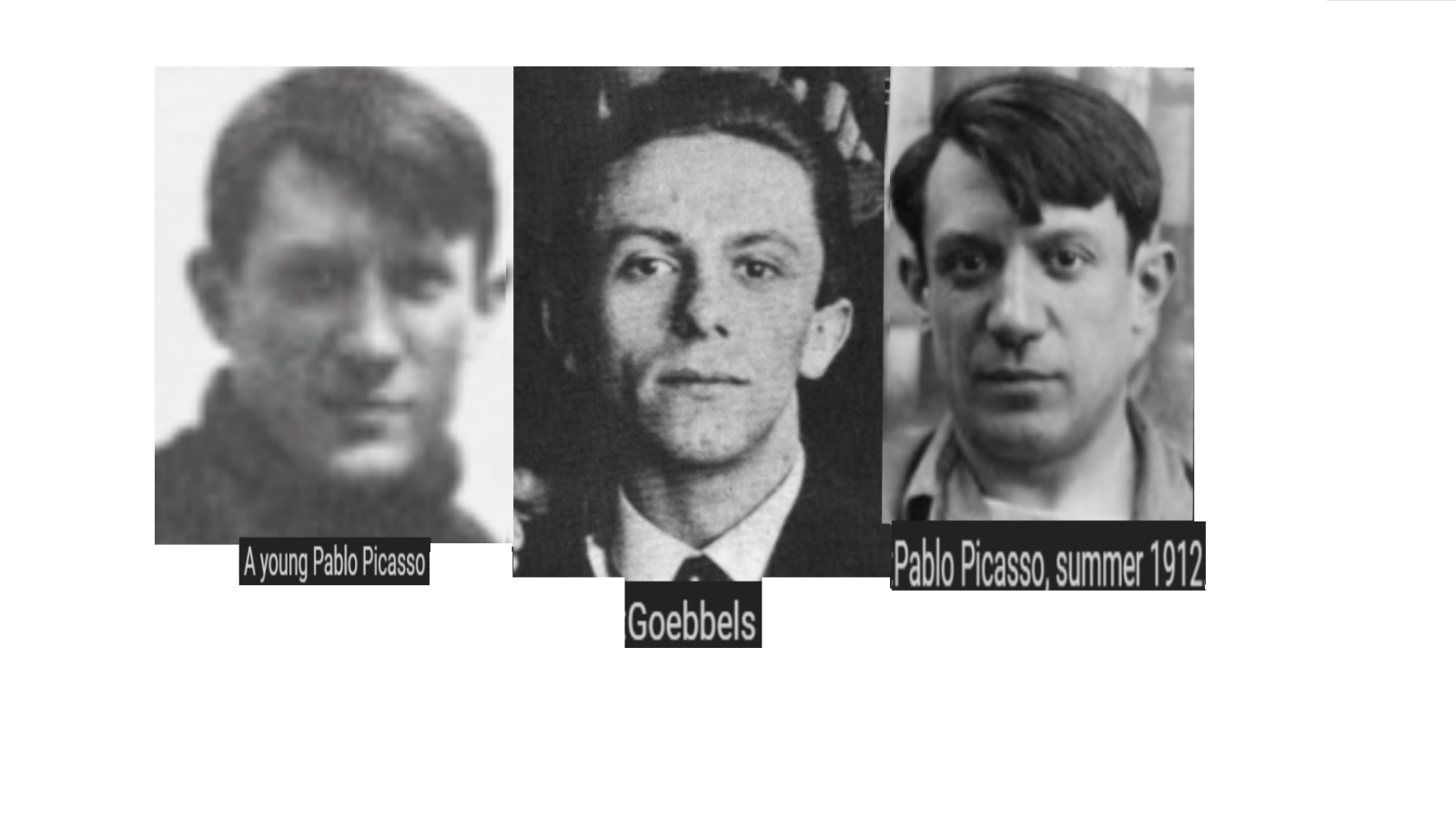 March 29, 2019March 29, 2019 Nazi Propaganda Minister, JOSEPH GOEBBELS = PABLO PICASSO, famous Spanish artist … Exposed here 1st! Share this: Share on X (Opens in new window) X Share on Facebook (Opens in new window) Facebook Like Loading... Related