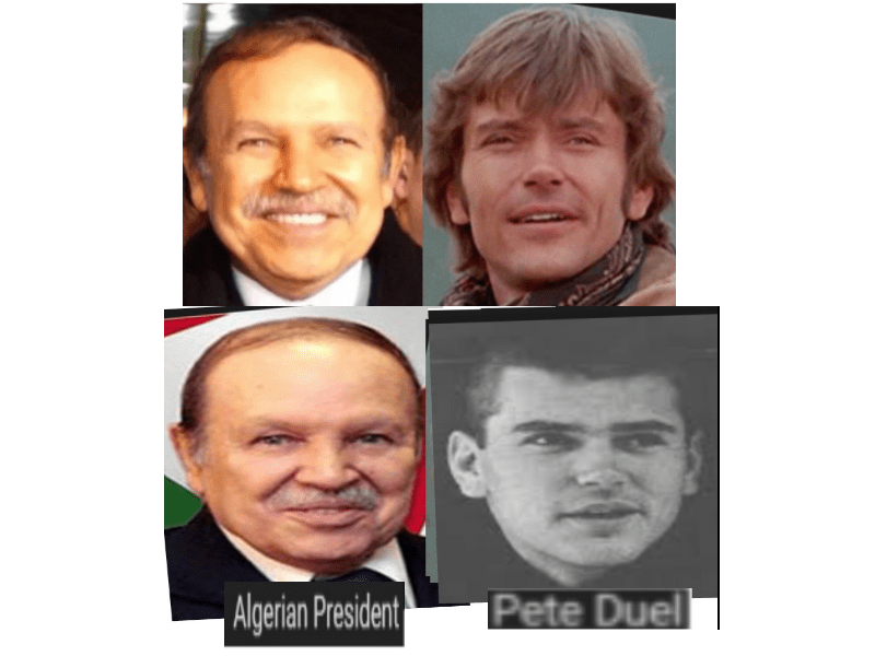 April 1, 2019April 1, 2019 ALGERIA’S PRESIDENT BOUTEFLIKA = PETE DUEL, AMERICAN ACTOR WHO SUPPOSEDLY COMMITED SUICIDE IN HIS 30S … EXPOSED HERE 1ST! Share this: Share on X (Opens in new window) X Share on Facebook (Opens in new window) Facebook Like Loading... Related