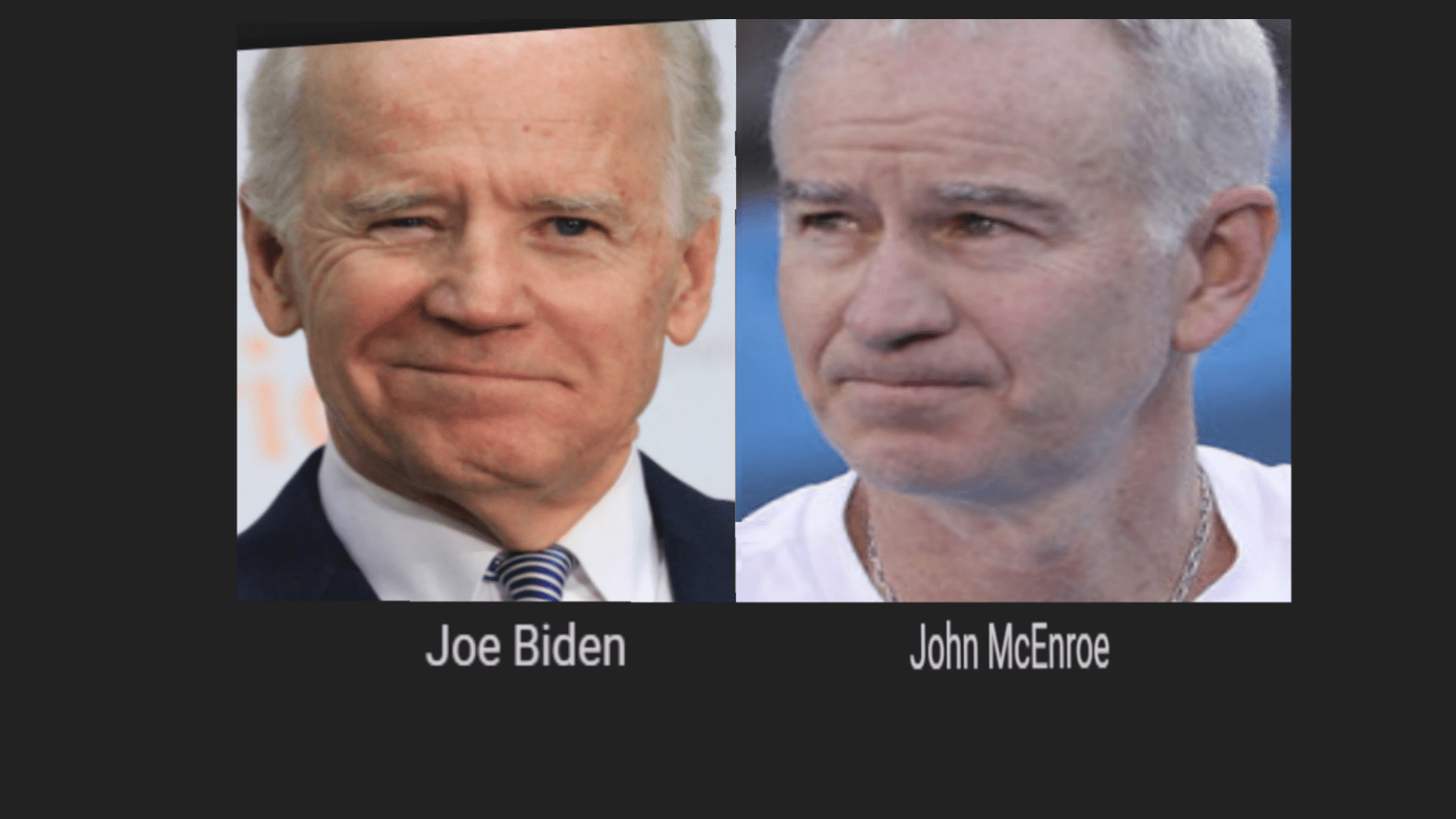 May 21, 2019May 25, 2019 U.S. presidential candidate, JOE BIDEN = JOHN McENROE, tennis champion. Share this: Share on X (Opens in new window) X Share on Facebook (Opens in new window) Facebook Like Loading... Related