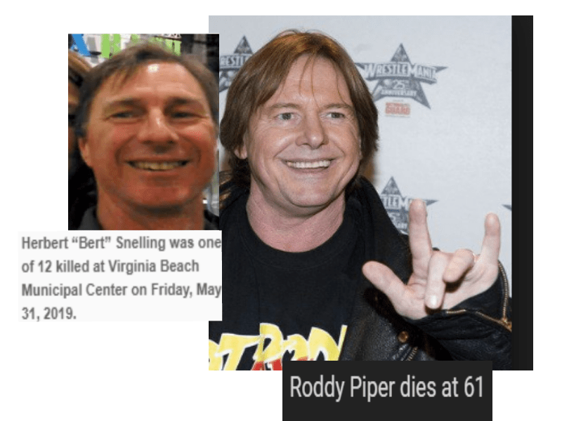 June 4, 2019 Virginia Beach shooting victim, HERBERT ‘BERT” SNELLING = RODNEY PIPER, (not) dead TV wrestler … Exposed here 1st! Share this: Share on X (Opens in new window) X Share on Facebook (Opens in new window) Facebook Like Loading... Related