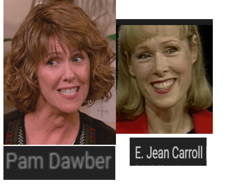 June 21, 2019June 21, 2019 Trump rape accuser, E. JEAN CARROLL = PAM DAWBER, actress … Exposed here 1st! Share this: Share on X (Opens in new window) X Share on Facebook (Opens in new window) Facebook Like Loading... Related