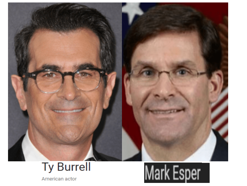 June 22, 2019June 22, 2019 Acting Sec. of Defense, MARK ESPER = TY BURRELL, actor .. Exposed here 1st! Share this: Share on X (Opens in new window) X Share on Facebook (Opens in new window) Facebook Like Loading... Related