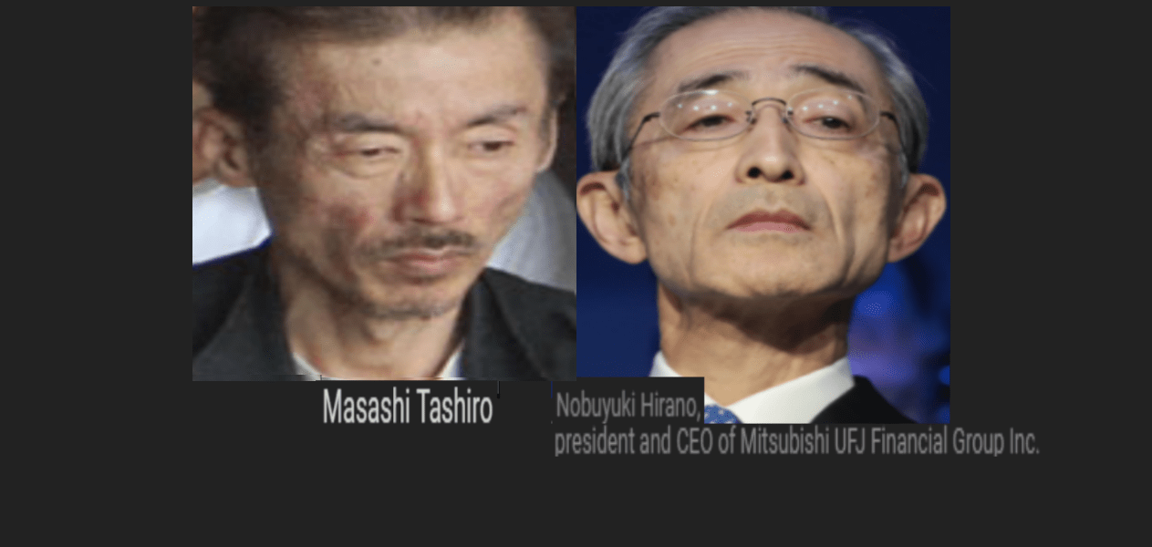 June 24, 2019 NOBUYUKI HIRANO, CEO Mitsubishi Bank = MASASHI TASHIRO, disgraced Japanese comedian … Exposed here 1st! Share this: Share on X (Opens in new window) X Share on Facebook (Opens in new window) Facebook Like Loading... Related