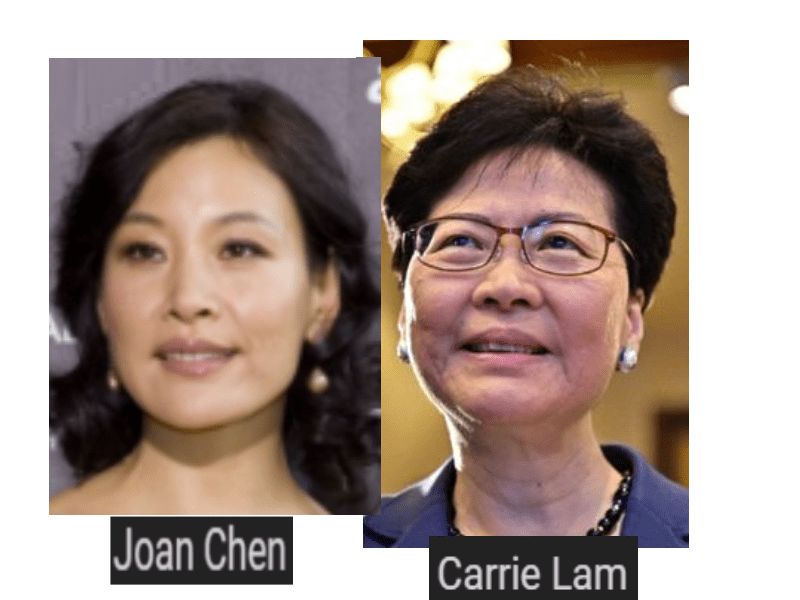 July 5, 2019 HONG KONG CHIEF EXECUTIVE CARRIE LAM = JOAN CHEN, CHINESE-AMERICAN ACTRESS … EXPOSED HERE 1ST! Share this: Share on X (Opens in new window) X Share on Facebook (Opens in new window) Facebook Like Loading... Related