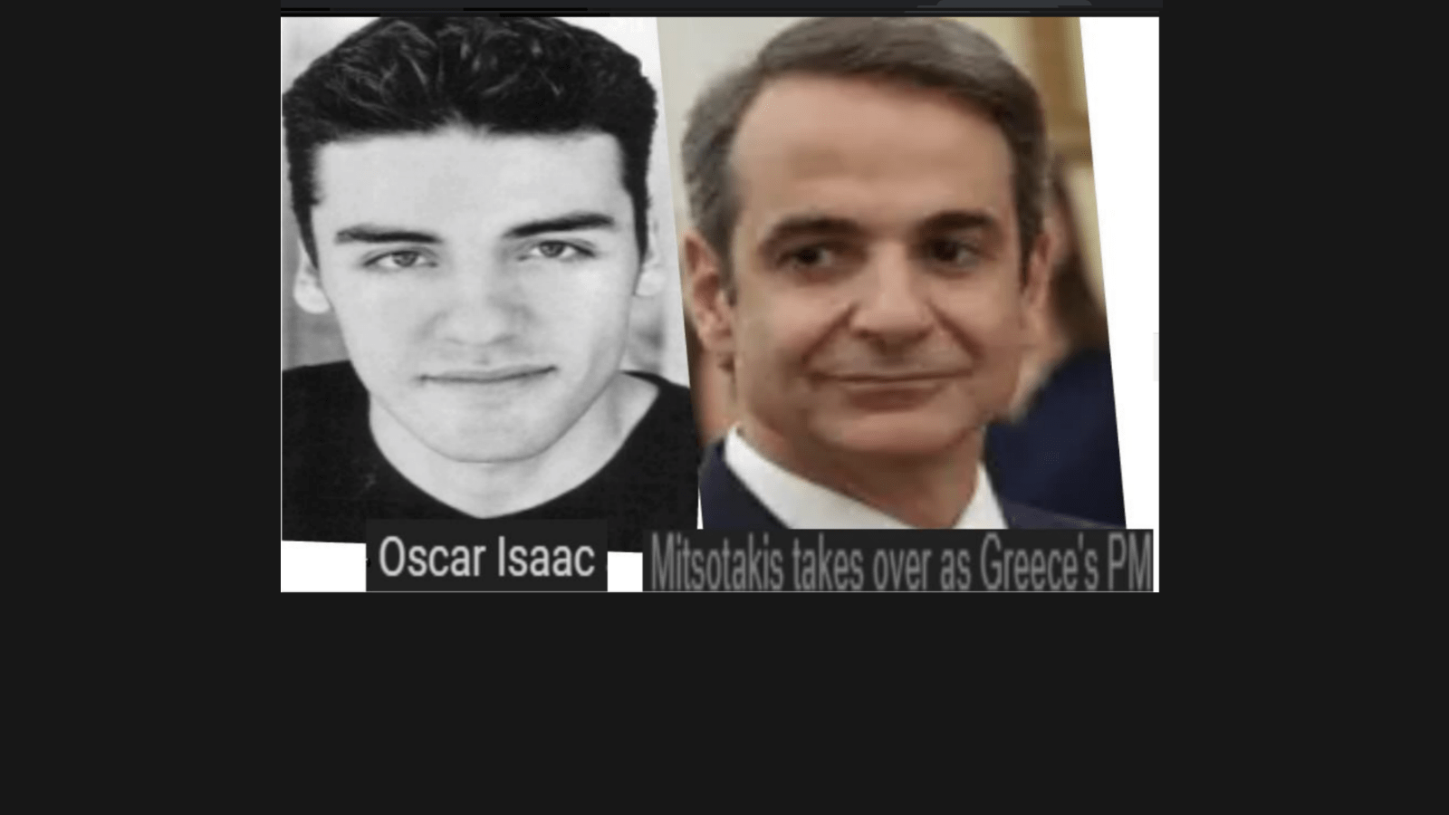 July 8, 2019July 9, 2019 Greece’s new PM: KYRIAKOS MITSOTAKIS = actor OSCAR ISSAC. World exclusive! Exposed here 1st! Share this: Share on X (Opens in new window) X Share on Facebook (Opens in new window) Facebook Like Loading... Related