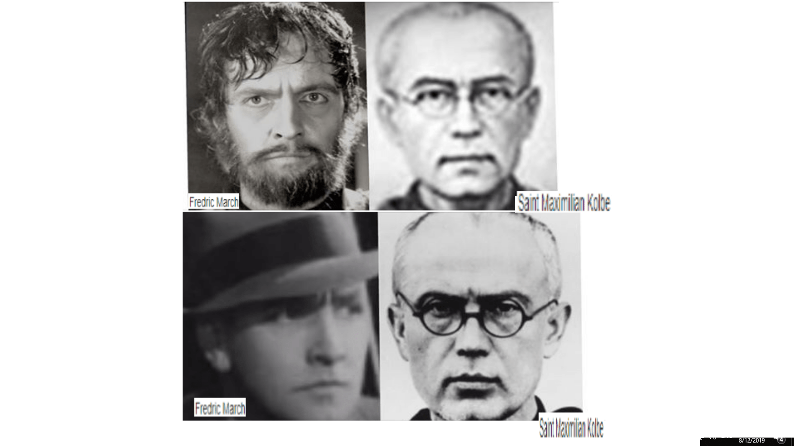 August 13, 2019 Saint Maximilian Kolbe = Fredric March, American actor ….. EXPOSED HERE 1ST! Share this: Share on X (Opens in new window) X Share on Facebook (Opens in new window) Facebook Like Loading... Related