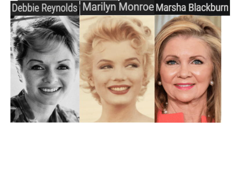 September 4, 2019 U.S. Gov. Marsha Blackburn = Debbie Reynolds = Marilyn Monroe … EXPOSED HERE 1ST! Share this: Share on X (Opens in new window) X Share on Facebook (Opens in new window) Facebook Like Loading... Related