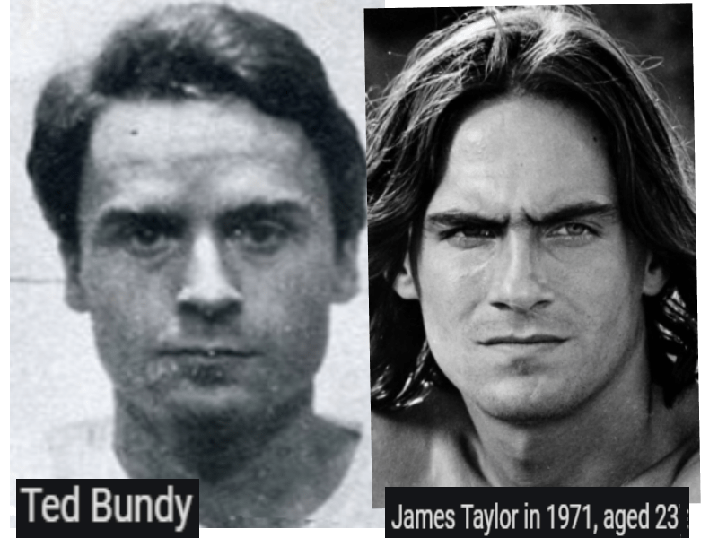 September 15, 2019 Serial killer TED BUNDY = JAMES TAYLOR, singer … Exposed here 1st! Share this: Share on X (Opens in new window) X Share on Facebook (Opens in new window) Facebook Like Loading... Related