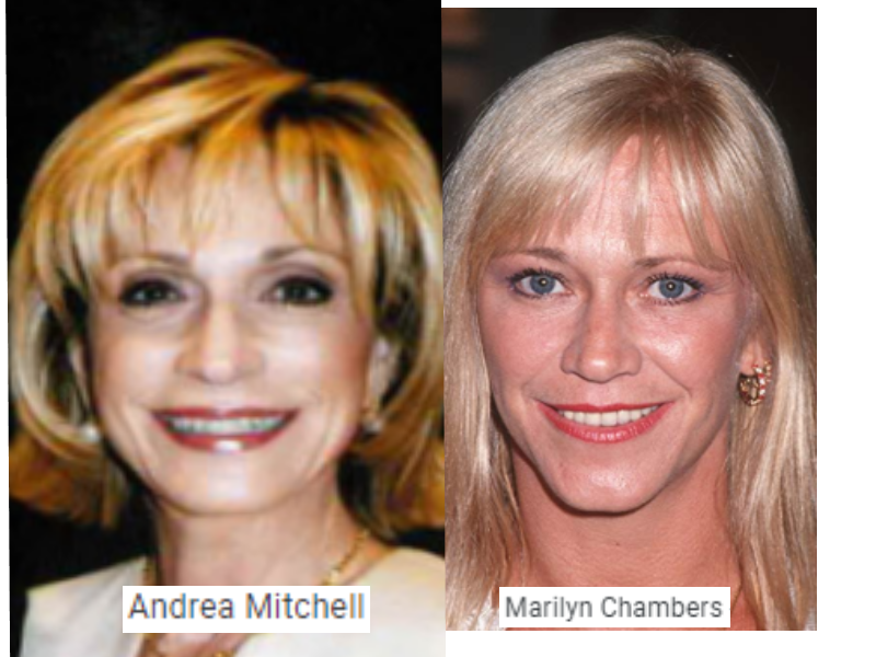 September 21, 2019September 25, 2019 NBC News Chief Foreign Affairs Correspondent, ANDREA MITCHELL = MARILYN CHAMBERS (not dead) porn star. Exposed here 1st! Share this: Share on X (Opens in new window) X Share on Facebook (Opens in new window) Facebook Like Loading... Related