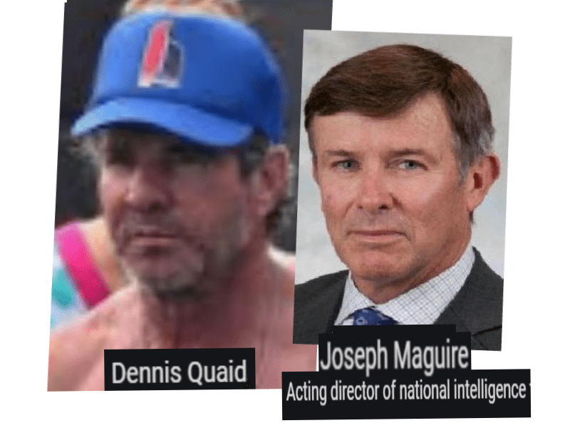 September 21, 2019September 26, 2019 TRUMP’S NATIONAL INTELLIGENCE CHIEF JOSEPH MAGUIRE = DENNIS QUAID, ACTOR … EXPOSED HERE 1ST! Share this: Share on X (Opens in new window) X Share on Facebook (Opens in new window) Facebook Like Loading... Related