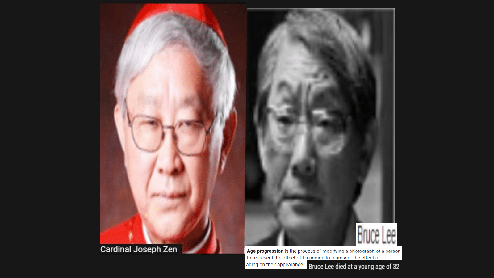 October 5, 2019October 9, 2019 HONG KONG’S CARDINAL JOSEPH ZEN = BRUCE LEE, DEAD MARTIAL ARTS MOVIE STAR … EXPOSED HERE 1ST! Share this: Share on X (Opens in new window) X Share on Facebook (Opens in new window) Facebook Like Loading... Related