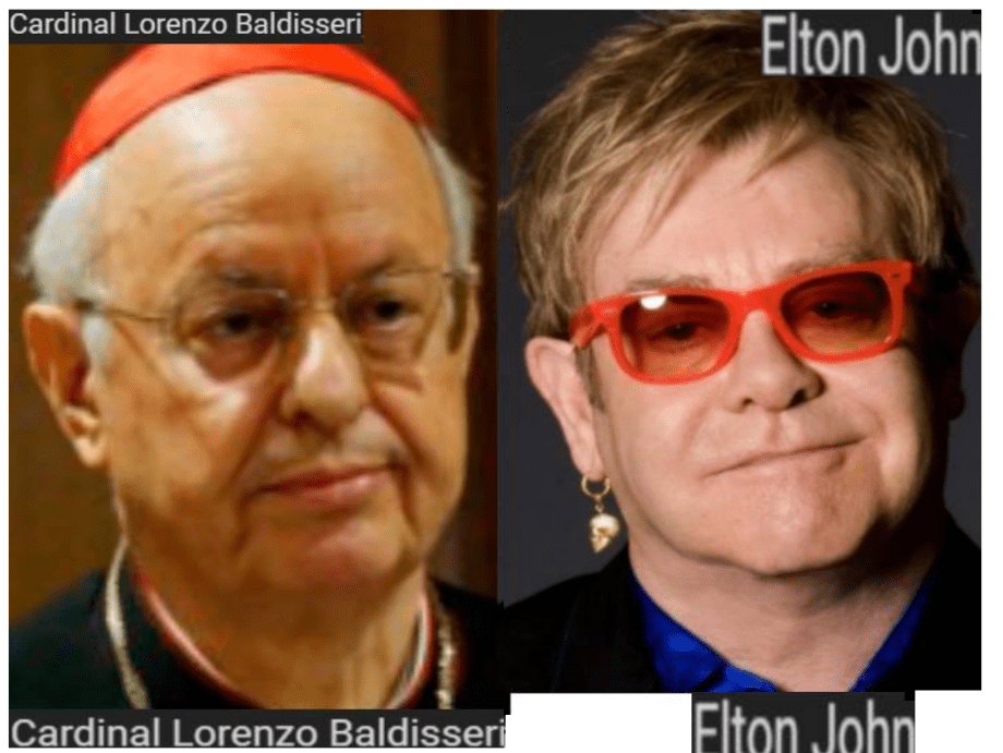 October 16, 2019 Cardinal Lorenzo Baldisseri = Elton John, homosexual singer/songwriter ….. Exposed here 1st! Share this: Share on X (Opens in new window) X Share on Facebook (Opens in new window) Facebook Like Loading... Related