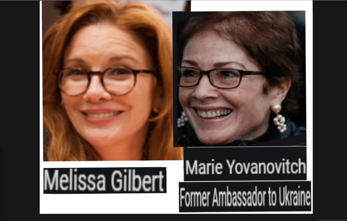 November 9, 2019 Former U.S. Ambssador to Ukraine, MARIA YOVANOVITCH = MELISSA GILBERT, actress. Exposed here 1st! Share this: Share on X (Opens in new window) X Share on Facebook (Opens in new window) Facebook Like Loading... Related