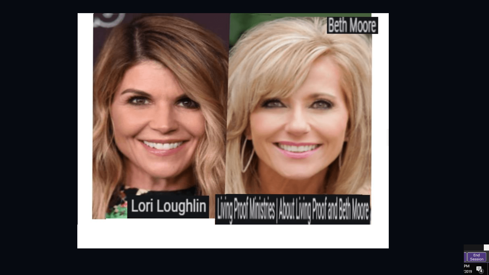 December 10, 2019December 12, 2019 TV evangelist Beth Moore = disgraced actress Lori Loughlin. Exposed here 1st! Share this: Share on X (Opens in new window) X Share on Facebook (Opens in new window) Facebook Like Loading... Related
