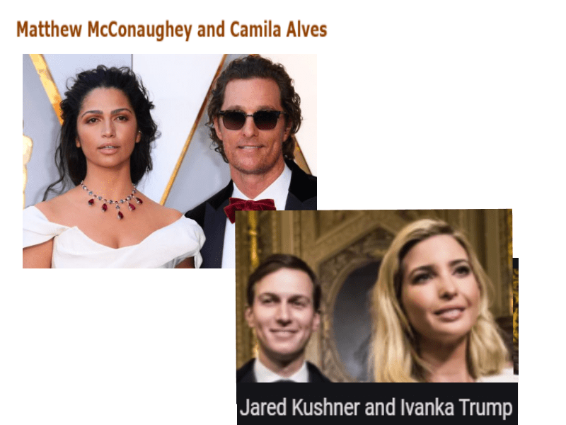 December 19, 2019 Jared Kushner & Ivanka Trump = Matthew McConaughey & Camila Alves. Exposed here 1st! Share this: Share on X (Opens in new window) X Share on Facebook (Opens in new window) Facebook Like Loading... Related