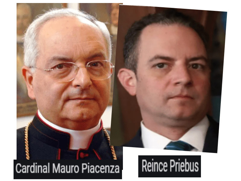 December 21, 2019 HIGH-RANKING VATICAN (ROMAN CURIA) CARDINAL MAURO PIACENZA = REINCE PRIEBUS, FORMER TRUMP CHIEF OF STAFF ….. EXPOSED HERE 1ST! Share this: Share on X (Opens in new window) X Share on Facebook (Opens in new window) Facebook Like Loading... Related