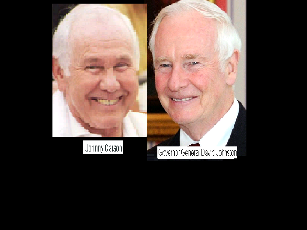 January 6, 2020July 4, 2020 Former Governor General of Canada, DAVID LLOYD JOHNSTON = JOHNNY CARSON, former late-night talk show host on NBC TV. Share this: Share on X (Opens in new window) X Share on Facebook (Opens in new window) Facebook Like Loading... Related