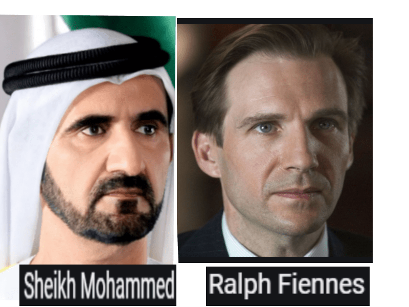 March 5, 2020 Sheikh Mohammed of Dubai = Ralph Fiennes, British actor ……………….. Exposed here 1st! Share this: Share on X (Opens in new window) X Share on Facebook (Opens in new window) Facebook Like Loading... Related