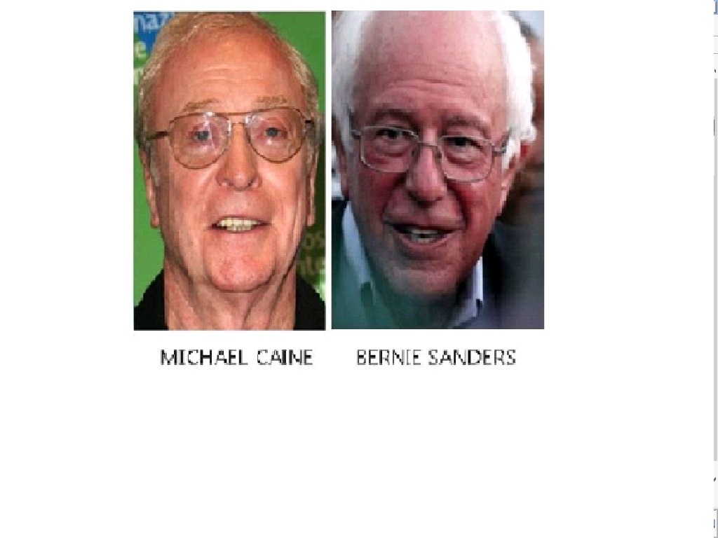 March 21, 2020 BERNIE SANDERS = MICHAEL CAINE Exposed here 1st! Share this: Share on X (Opens in new window) X Share on Facebook (Opens in new window) Facebook Like Loading... Related