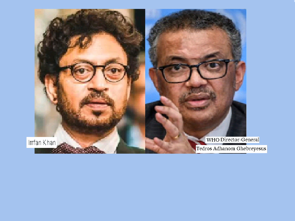 April 1, 2020 W.H.O. Chief TEDROS ADHANOM = IRRFAN KHAN, actor in “Slumdog Millionaire” and “Life of Pi” movies. Exposed here 1st! Share this: Share on X (Opens in new window) X Share on Facebook (Opens in new window) Facebook Like Loading... Related