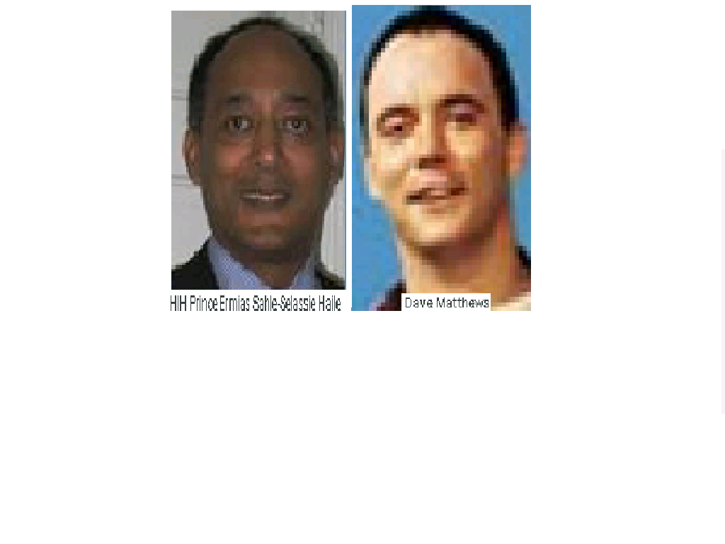 April 19, 2020 Ruler of Ethiopia, Prince Ermias Sahle Selassie = Dave Matthews, American singer .. Exposed here 1st! Share this: Share on X (Opens in new window) X Share on Facebook (Opens in new window) Facebook Like Loading... Related