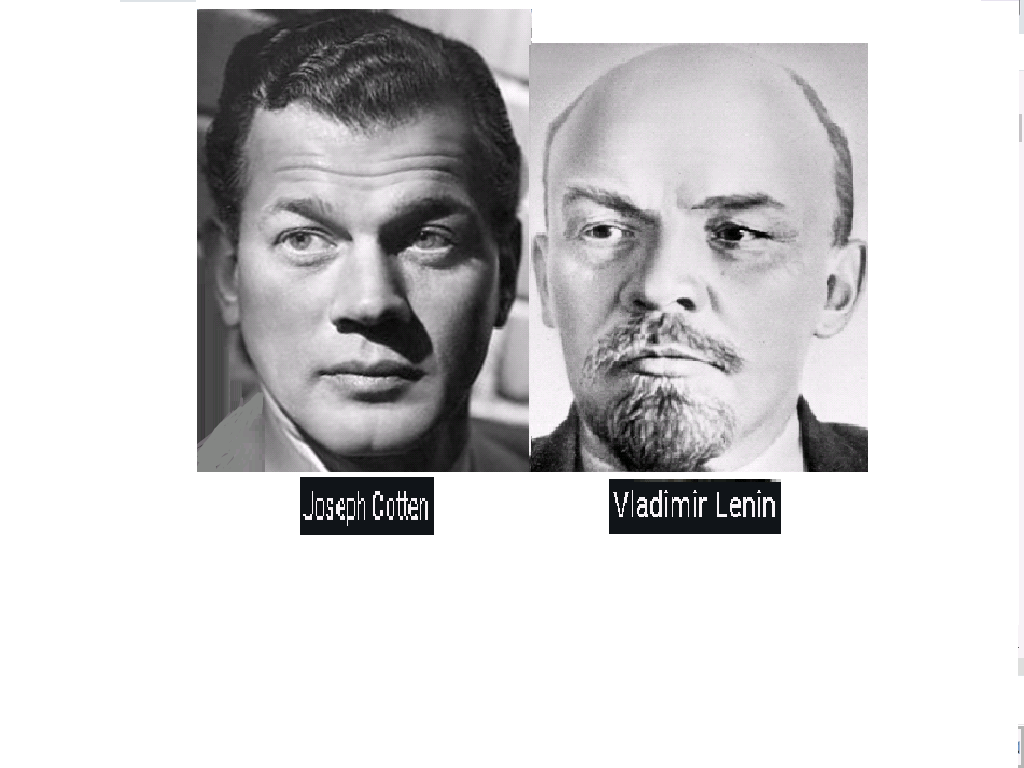 April 25, 2020 Vladimir Lenin = Joseph Cotten, American actor …. Exposed here 1st! Share this: Share on X (Opens in new window) X Share on Facebook (Opens in new window) Facebook Like Loading... Related