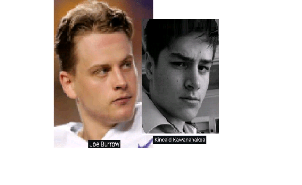 May 8, 2020 NFL 1st-round draft-pick quarterback JOE BURROW = KINCAID KAWANANAKOA, 2nd to the Hawaiian throne behind his father …… Exposed here 1st! Share this: Share on X (Opens in new window) X Share on Facebook (Opens in new window) Facebook Like Loading... Related